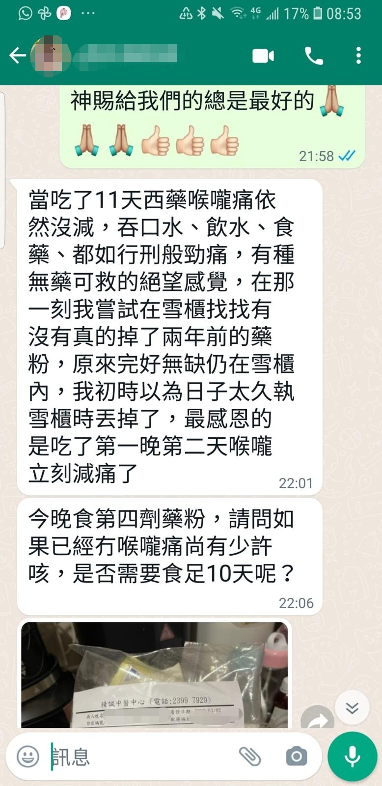 感謝你!我的新冠感染才這麼快痊愈,由好咳吃了第一劑藥後已有明顯改善,即使發高燒,精神亦明顯比之前好!