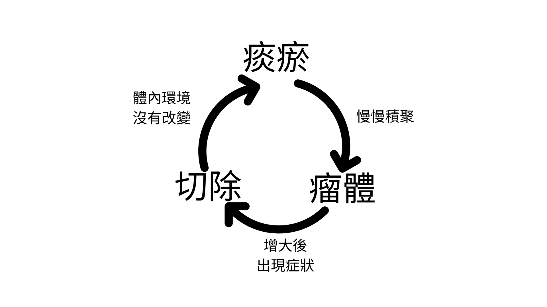 因此,治療的關鍵不在於「切除」,而在於「疏通」與「調理」,同時這也是為什麼很多病人尤其是朱古力瘤的病人,手術後多次復發。朱古力瘤切除後,致病原因不根除,身體繼續產生血瘀痰瘀,然後腫瘤復發。
